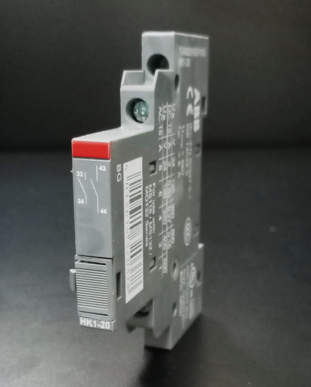 Os contatos auxiliares hk1 mudam de posição com os contatos principais do motor de partida manual. Eles são montados lateralmente no lado direito dos motores de partida manual ms116, ms132 ou ms165. Os contatos auxiliares hk1 estão disponíveis como contatos normalmente abertos ou normalmente fechados.