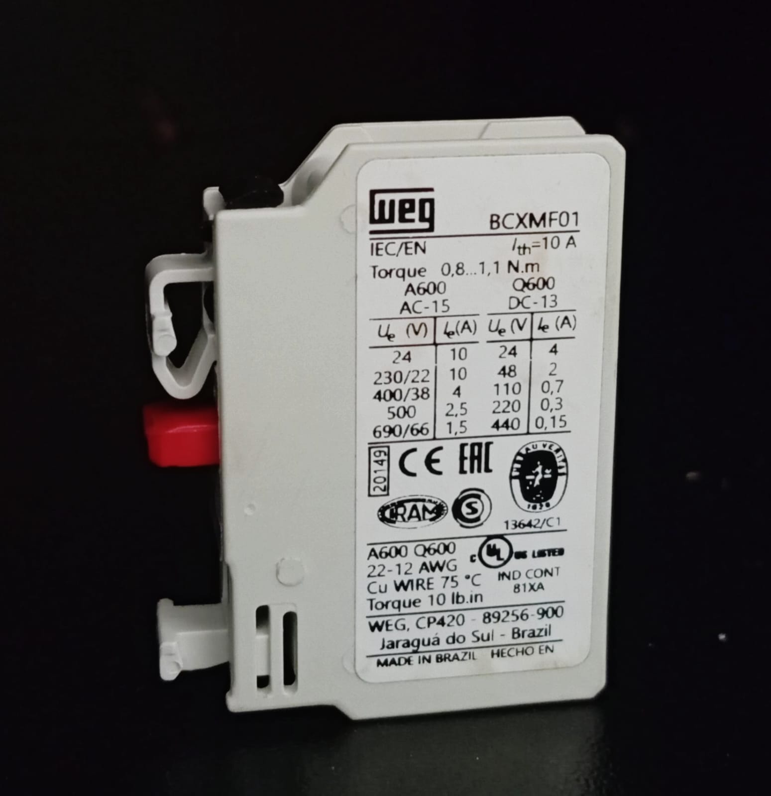 O BCXMF-01 da WEG é um bloco de contato auxiliar frontal com 1 contato normalmente fechado (1NF), desenvolvido para ampliação de funções de comando e sinalização em dispositivos de manobra. É compatível com contatores e disjuntores da linha WEG, oferecendo instalação frontal simples e segura.