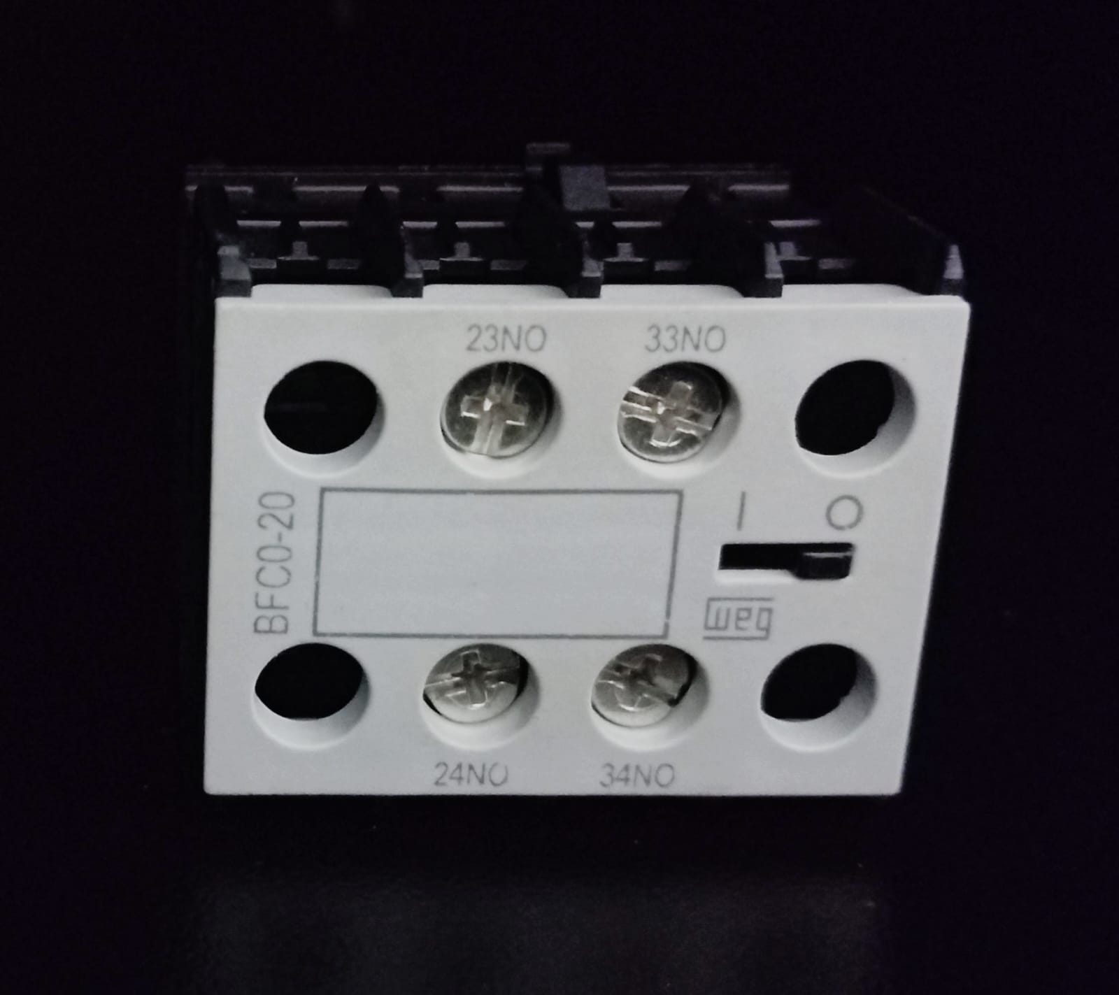 Bloco de contato auxiliar frontal desenvolvido para ampliação das funções de comando e sinalização em contatores da linha CWC da WEG. Possui dois contatos normalmente abertos, garantindo confiabilidade e segurança em circuitos de controle.