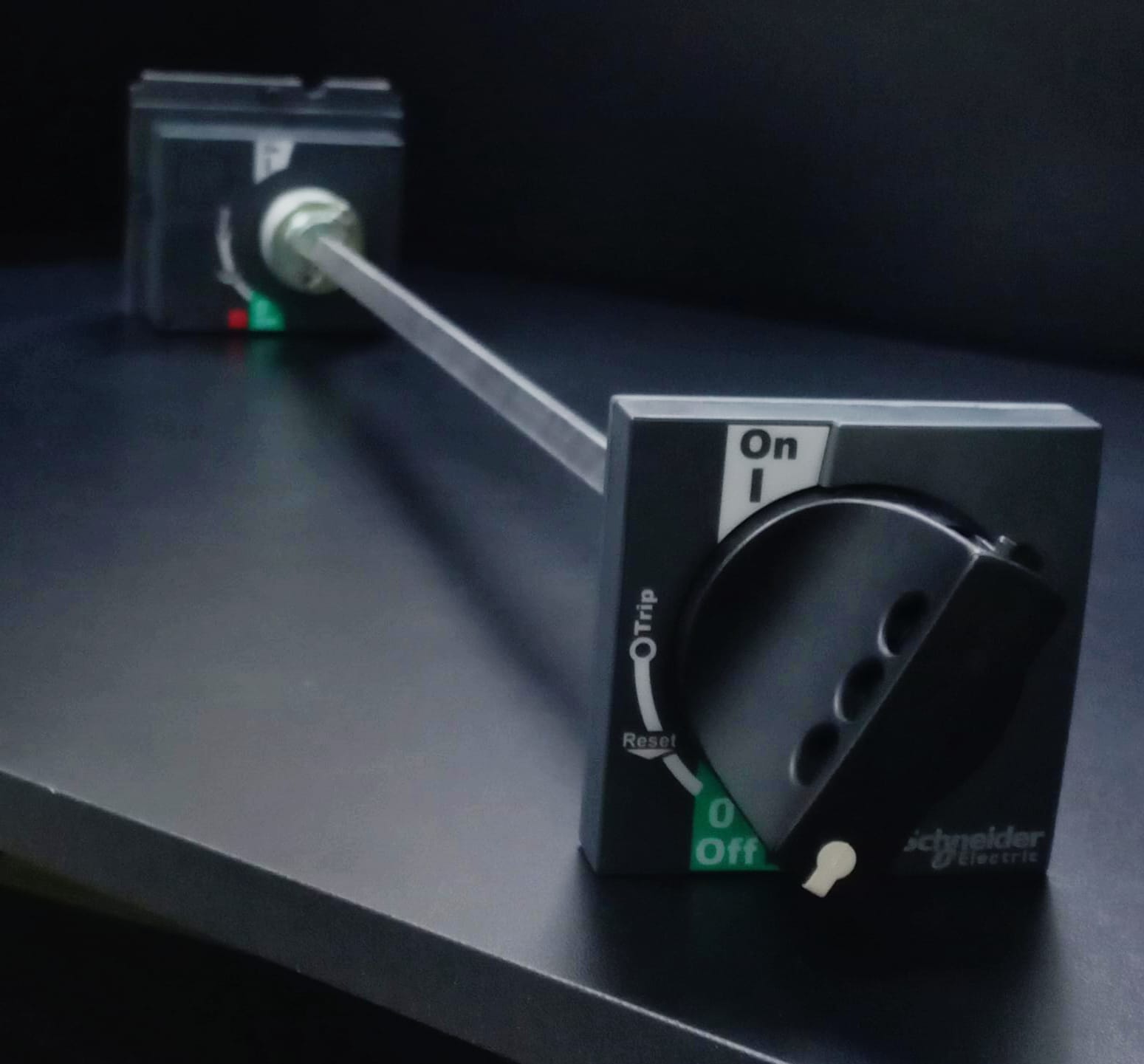 A "Manopla Rotativa Estendida (P/NSX250)" é um componente projetado para o controle e manuseio de disjuntores, especificamente do modelo NSX250. Essa manopla é utilizada para operar o disjuntor de forma segura e eficiente, permitindo a ativação e desativação do circuito elétrico ao qual está conectada. A característica "rotativa" indica que o dispositivo permite o giro da manopla para executar as funções de ligar ou desligar o disjuntor. A extensão dessa manopla facilita o acesso e o manuseio, mesmo em painéis ou caixas elétricas onde o espaço pode ser limitado ou a visibilidade dificultada. A aplicação desse tipo de manopla é comum em ambientes industriais e comerciais onde é necessário um controle confiável e seguro dos sistemas elétricos.